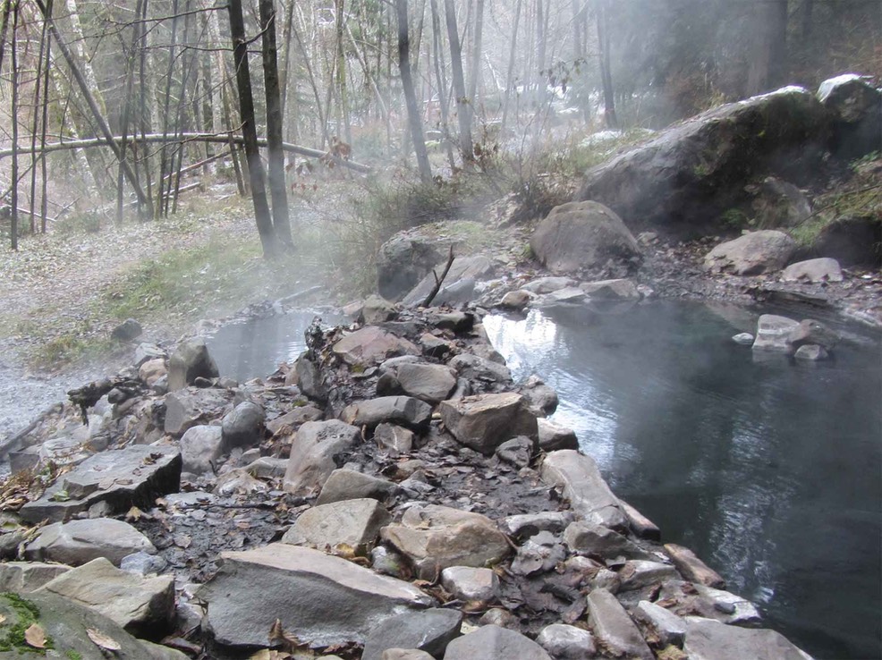 NOTE: The Olympic Hot Springs are still there, but Olympic Hot Springs Road is closed at Madison Falls. While it is possible to get to the hot springs on a day hike, it is a VERY long hike. It is more of a camping trip. Another option is to bicycle, though this means managing a bicycle along a good stretch of hiking trail. Hiking to the Altair Bridge (1:10 each way) or the Dam Overlook (1:45 each way) are good alternatives for exploring the Elwha Valley.